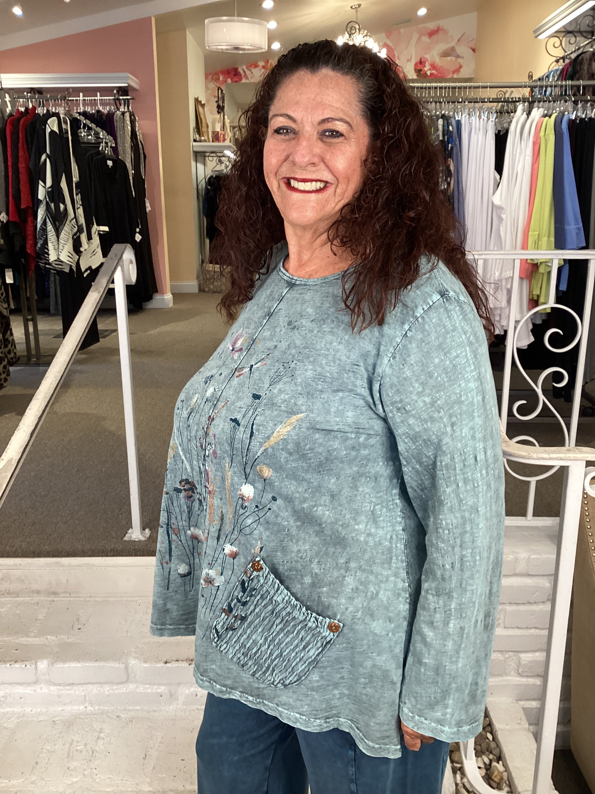 The Front Seam Pocket Top is your new go-to for cozy, casual style! Made from cotton, it’s super soft and breathable for all-day comfort. With a fun mineral-washed, cheeky contrast pockets, and buttons, it adds personality to a relaxed fit. Plus, the charming dragonfly and flower design brings a whimsical touch, while the two handy pockets keep essentials close. Perfect for effortless, playful looks that feel as good as they look!