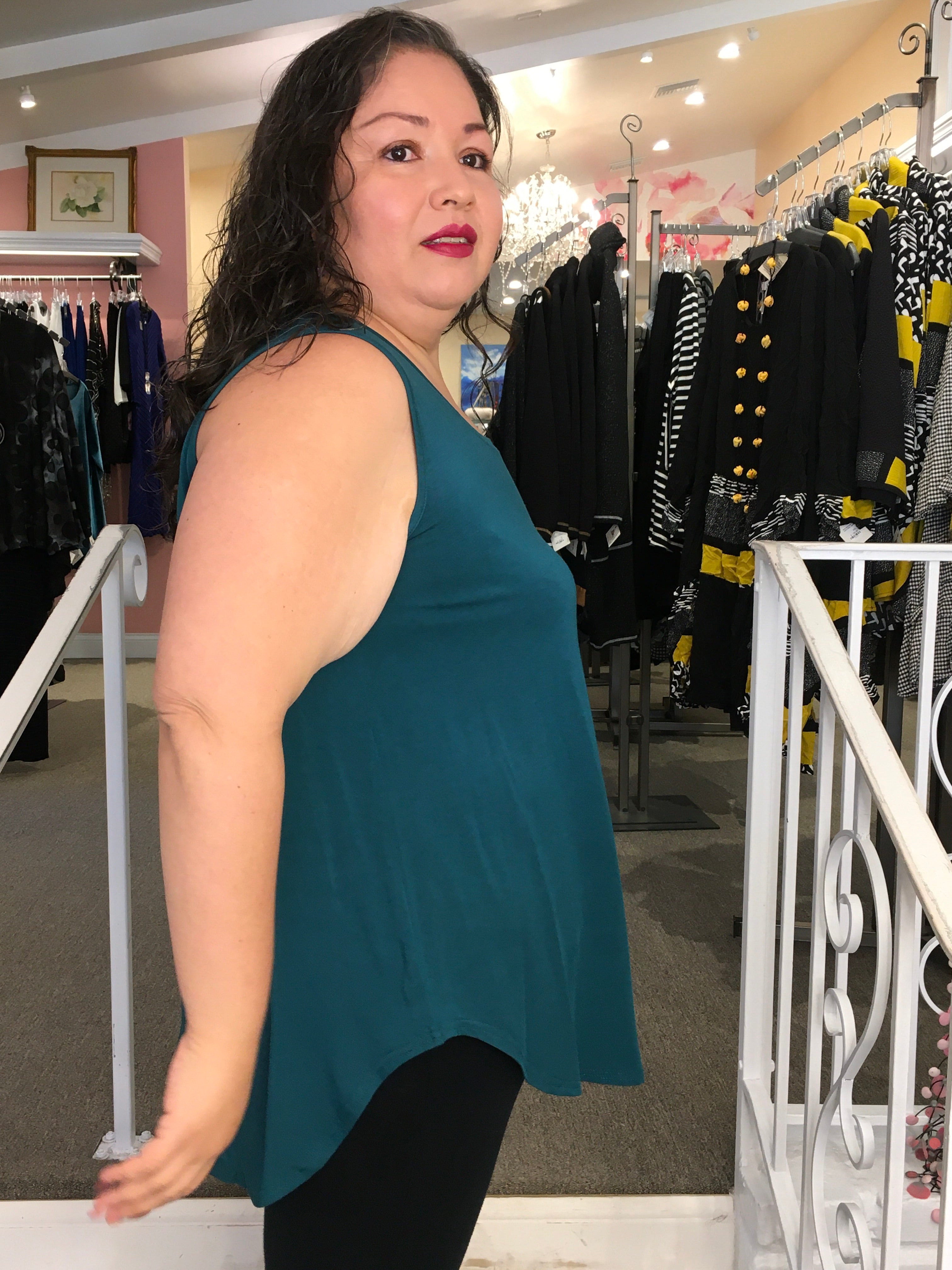 The Jazz tank provides comfort through it's design and the soft, bamboo fabric. The fuller shape of the Jazz Tank is both forgiving and style-ready. Designed so that fabric floats away from the body, creating a softened visual effect and clean finish. A longer hemline in the back provides coverage, and shoulder straps are carefully shaped to hide bras.