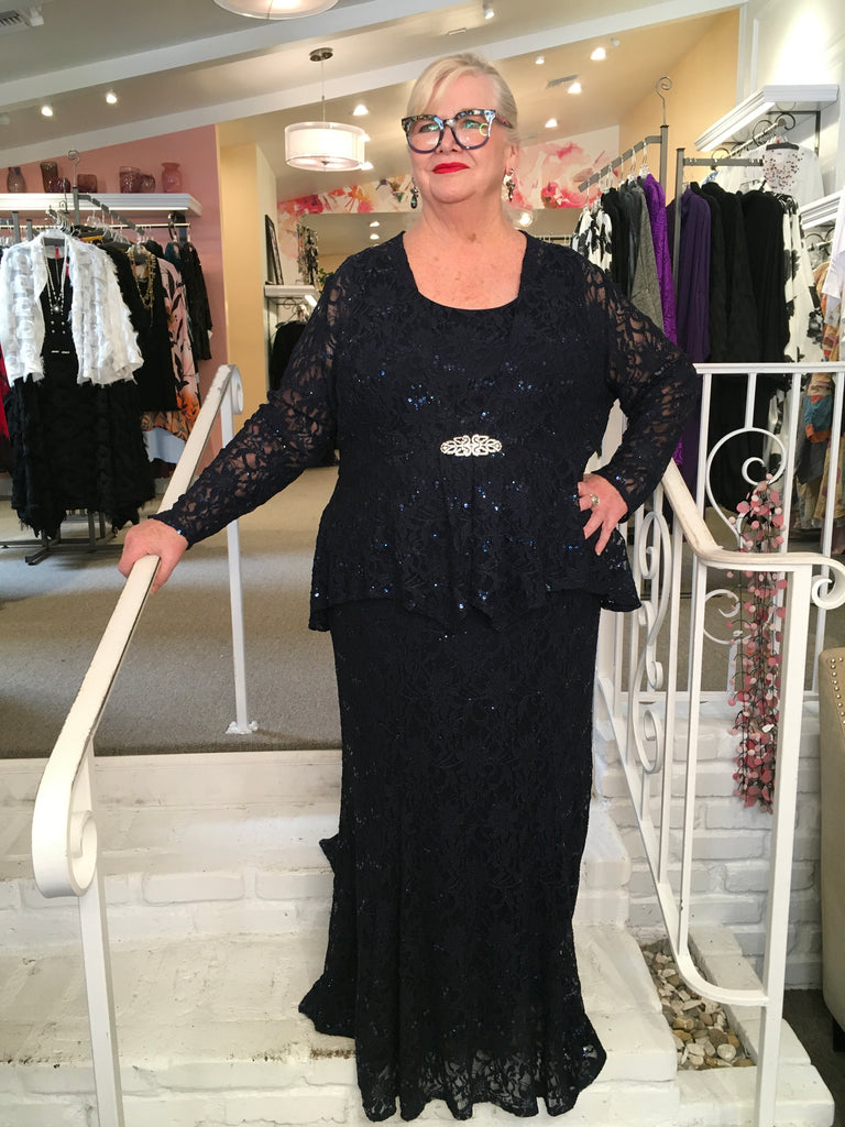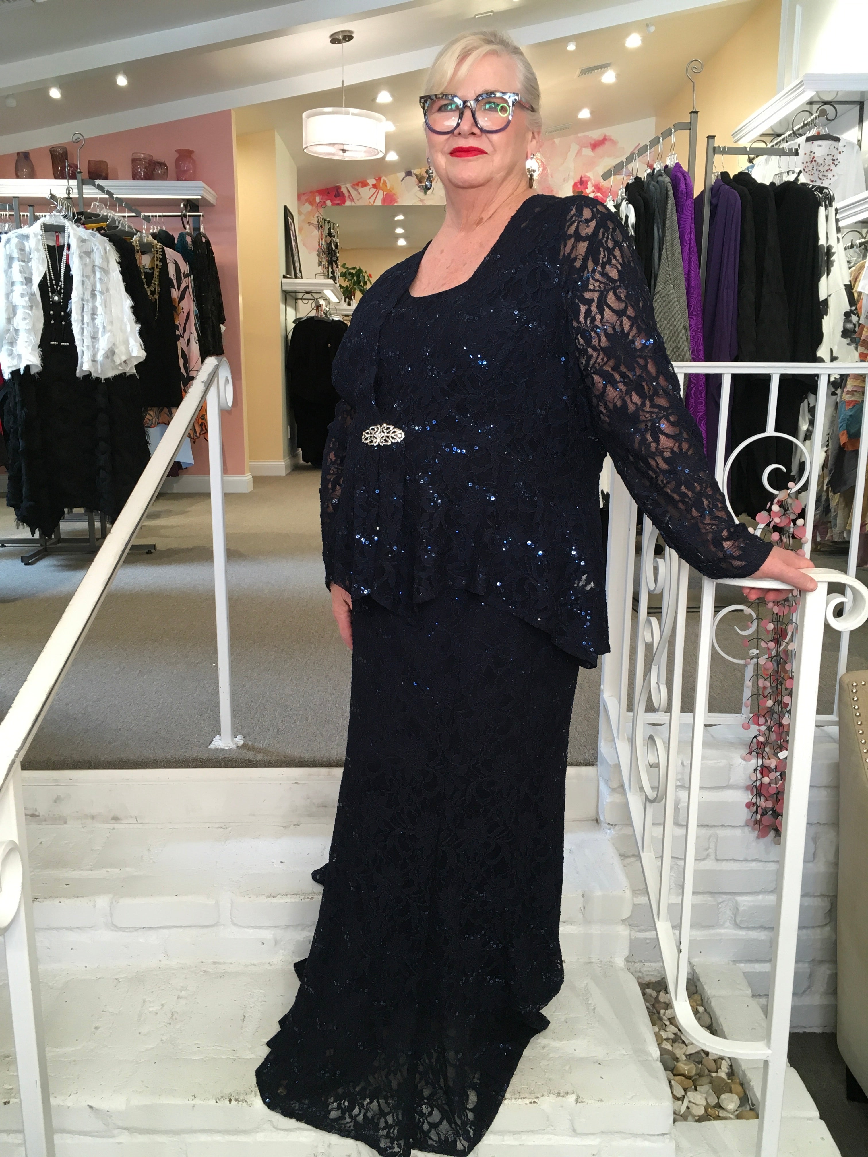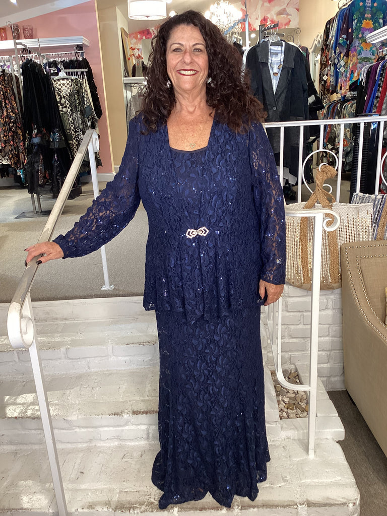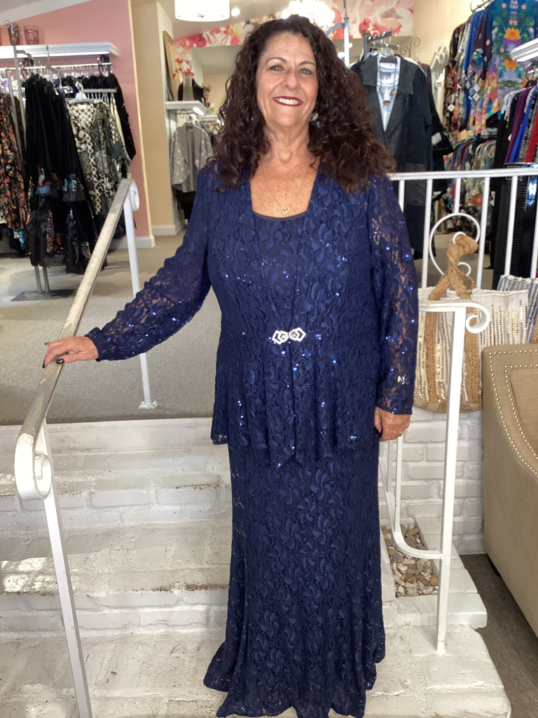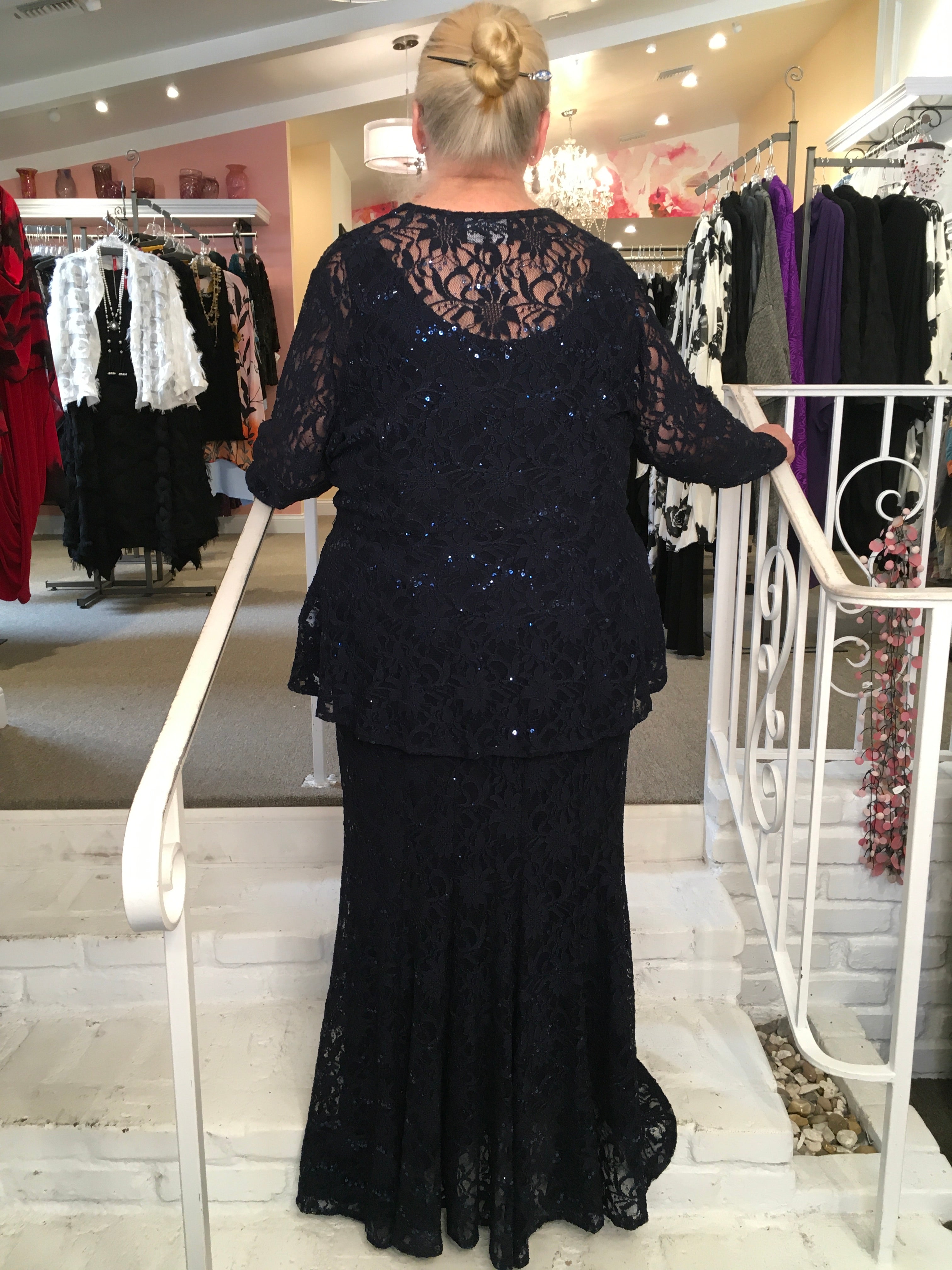 Classic evening wear from Alex Evening...tank dress and jacket ensemble with ornamental closure. Sequin embellished lace jacket and lined dress make a special and sophisticated look for evening or black tie affairs.