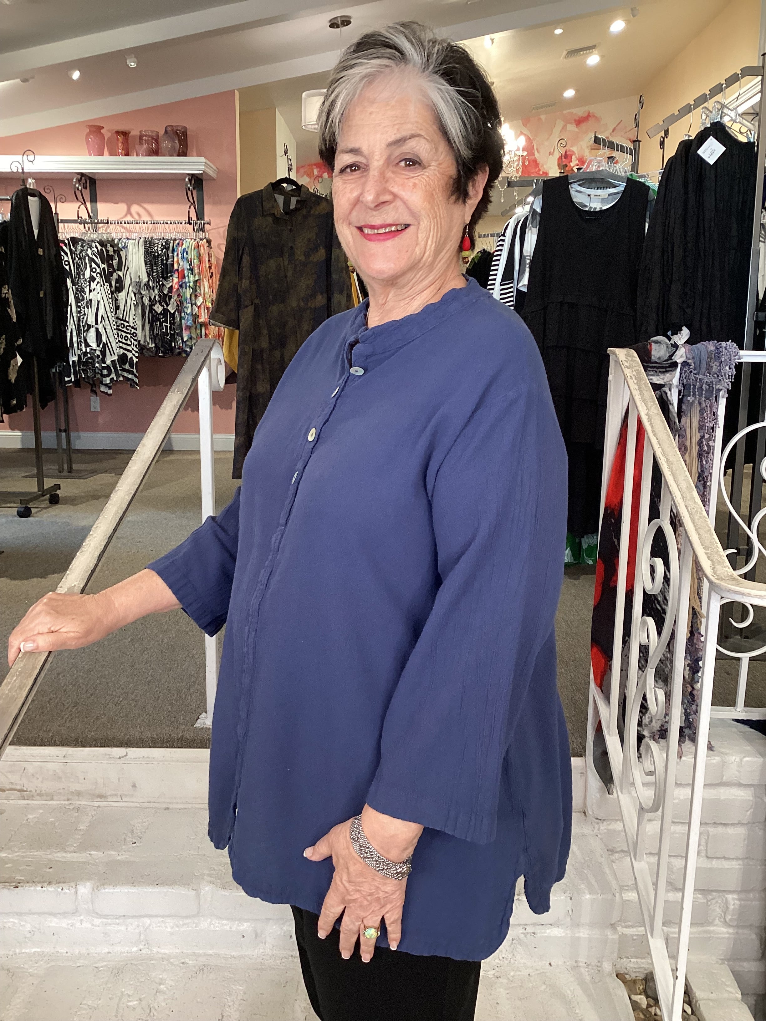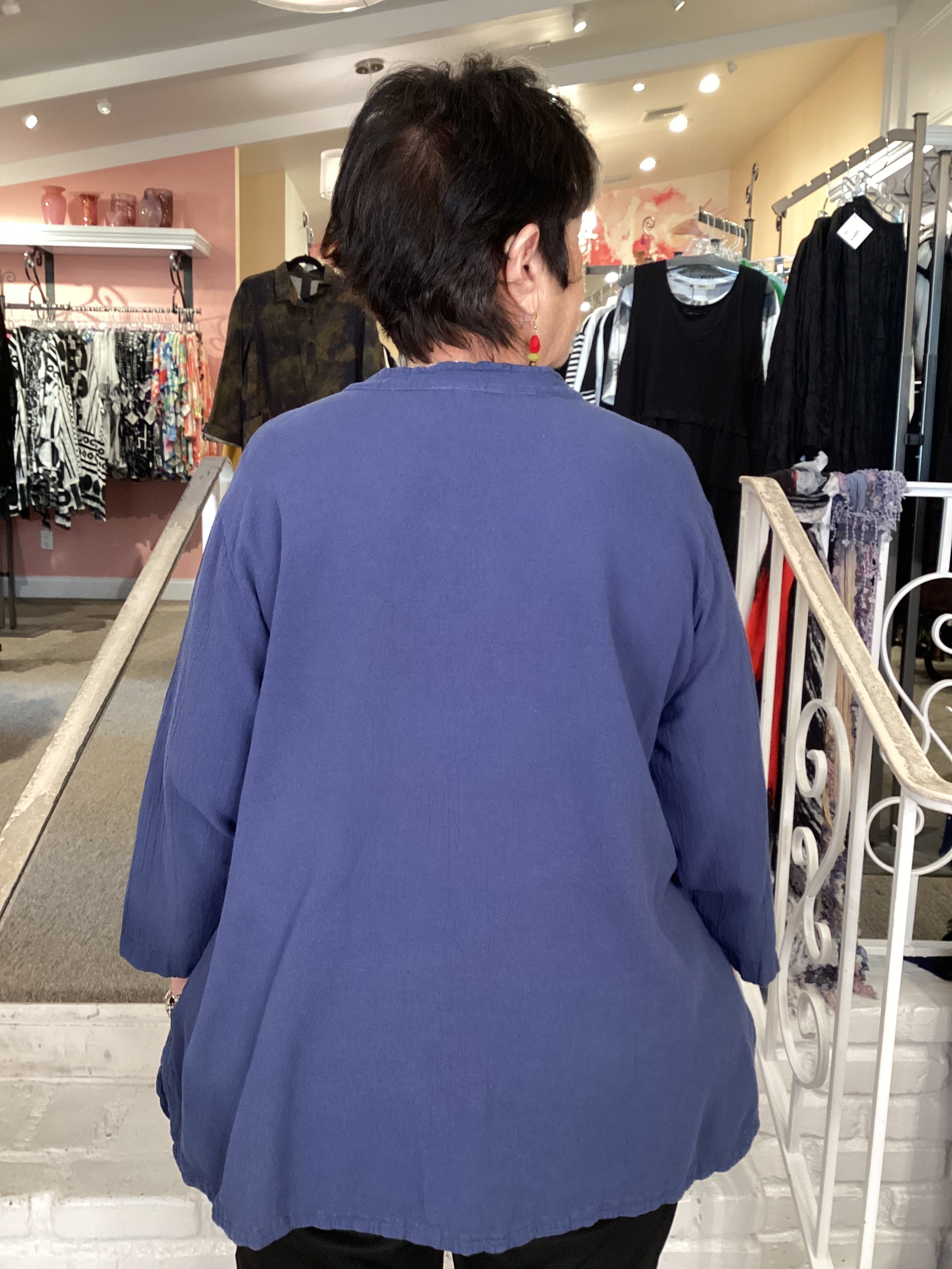 Embrace effortless elegance with the MANTRA BLOUSE. Crafted from breathable cotton gauze, this relaxed-fit blouse features a sophisticated Mandarin collar and a four-button partial placket for easy layering and styling versatility. Long sleeves are finished with subtle side slits at the hem, allowing natural movement while maintaining a refined silhouette.