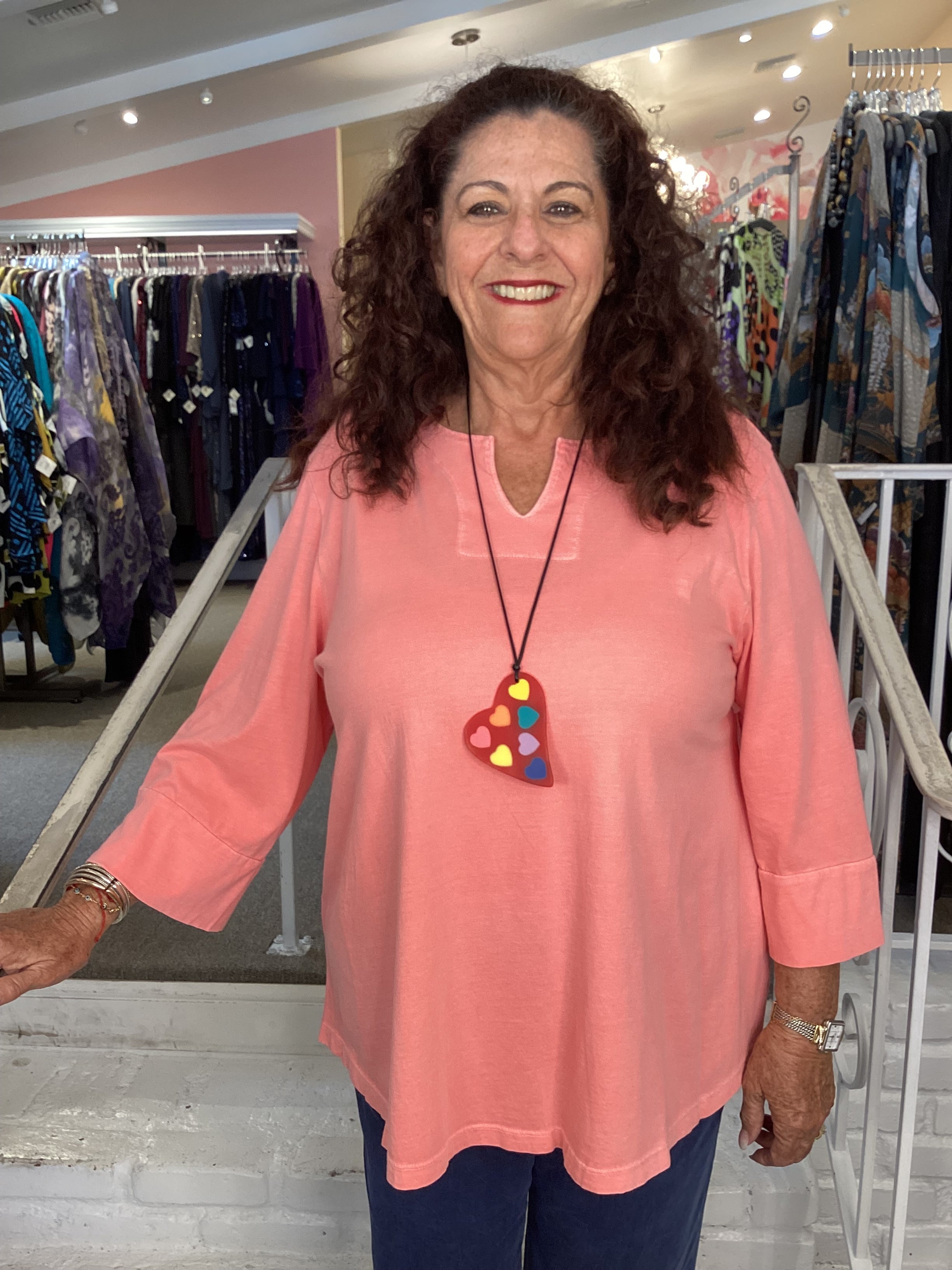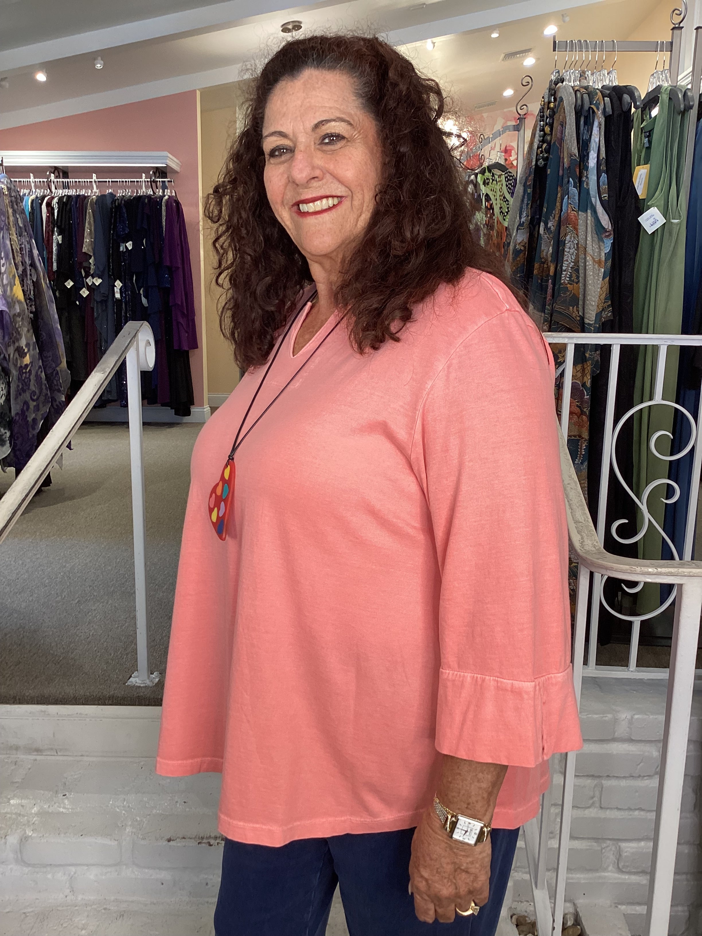 Elevate your casual wardrobe with our NOTCH NECK TOP in STRAWBERRY. Made from soft Cotton Jersey, it features a flattering notch neck detail and 3/4 sleeves for a stylish and comfortable fit. Crafted from 100% cotton, it's a must-have for your everyday look.