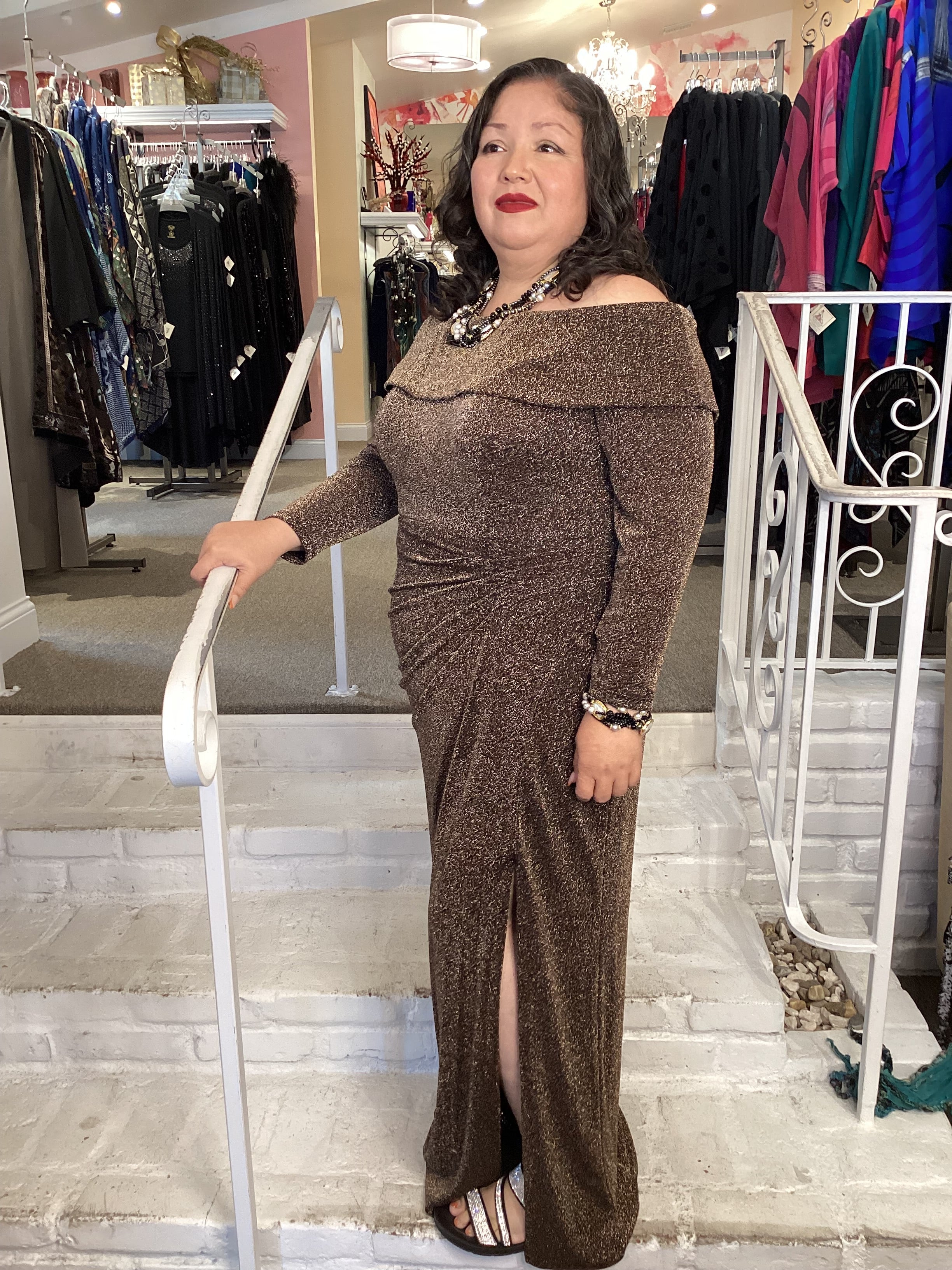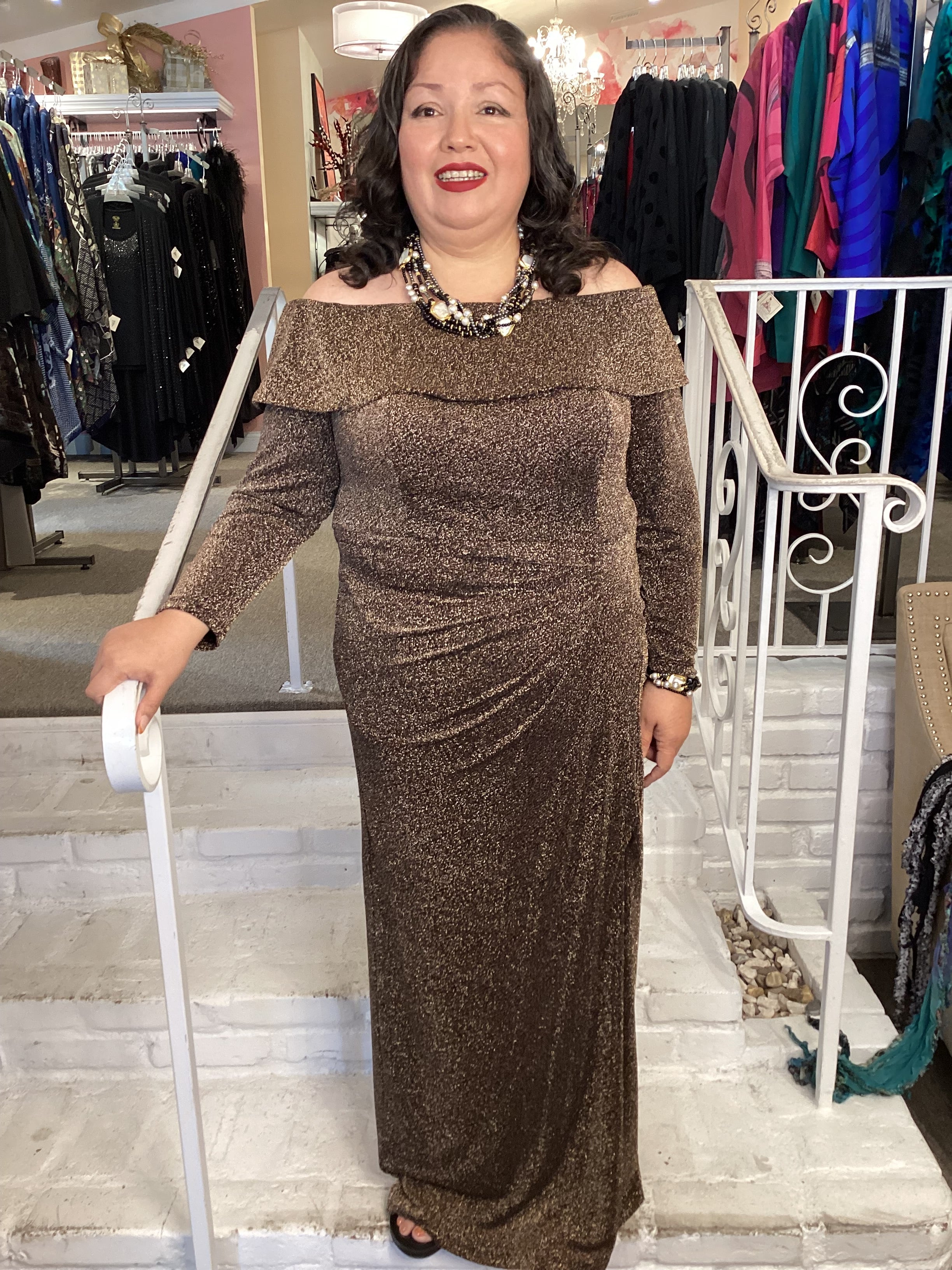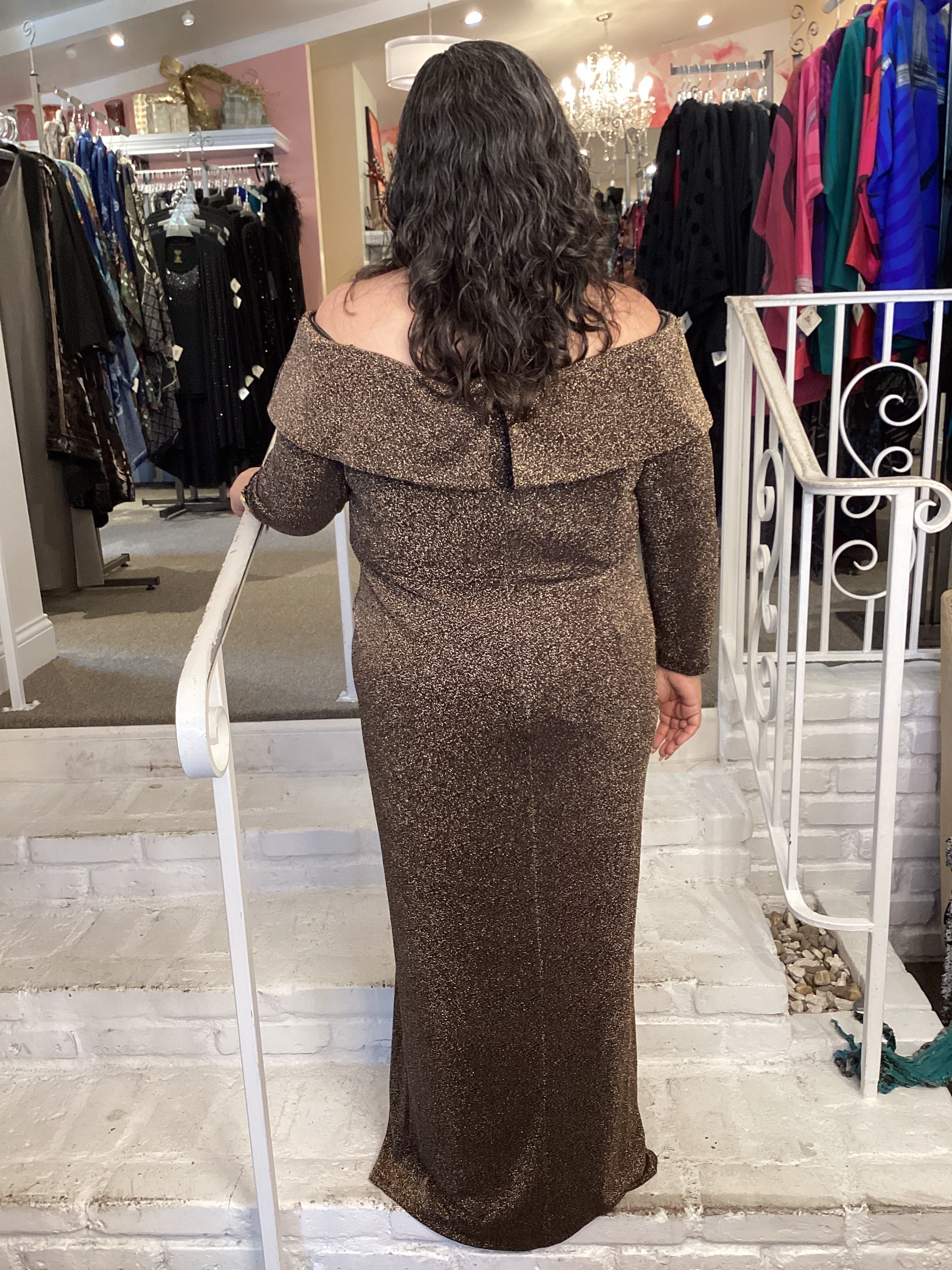 OFF SHOULDER GOWN- BLK/COPPER 8427757 BLK/COPPER