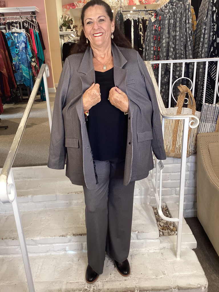 Crafted from stretch fabric for superior comfort and fashion, the Sasha Pant boasts a pull-on design and chic houndstooth print. Complete the look with the Kacey blazer for a sophisticated suit.