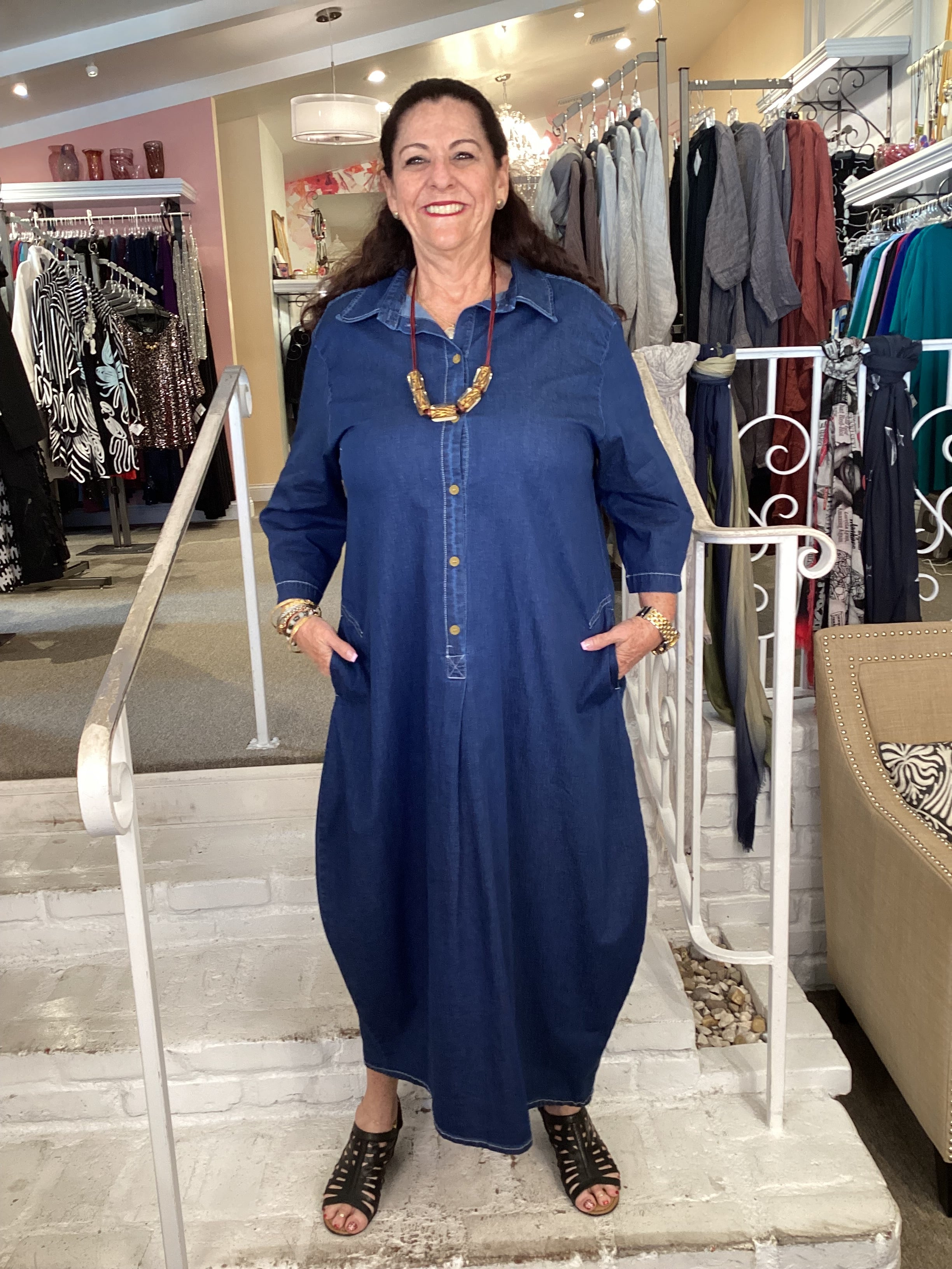SD910D MAXI SHIRT DRESS -DENIM SD910D DENIM