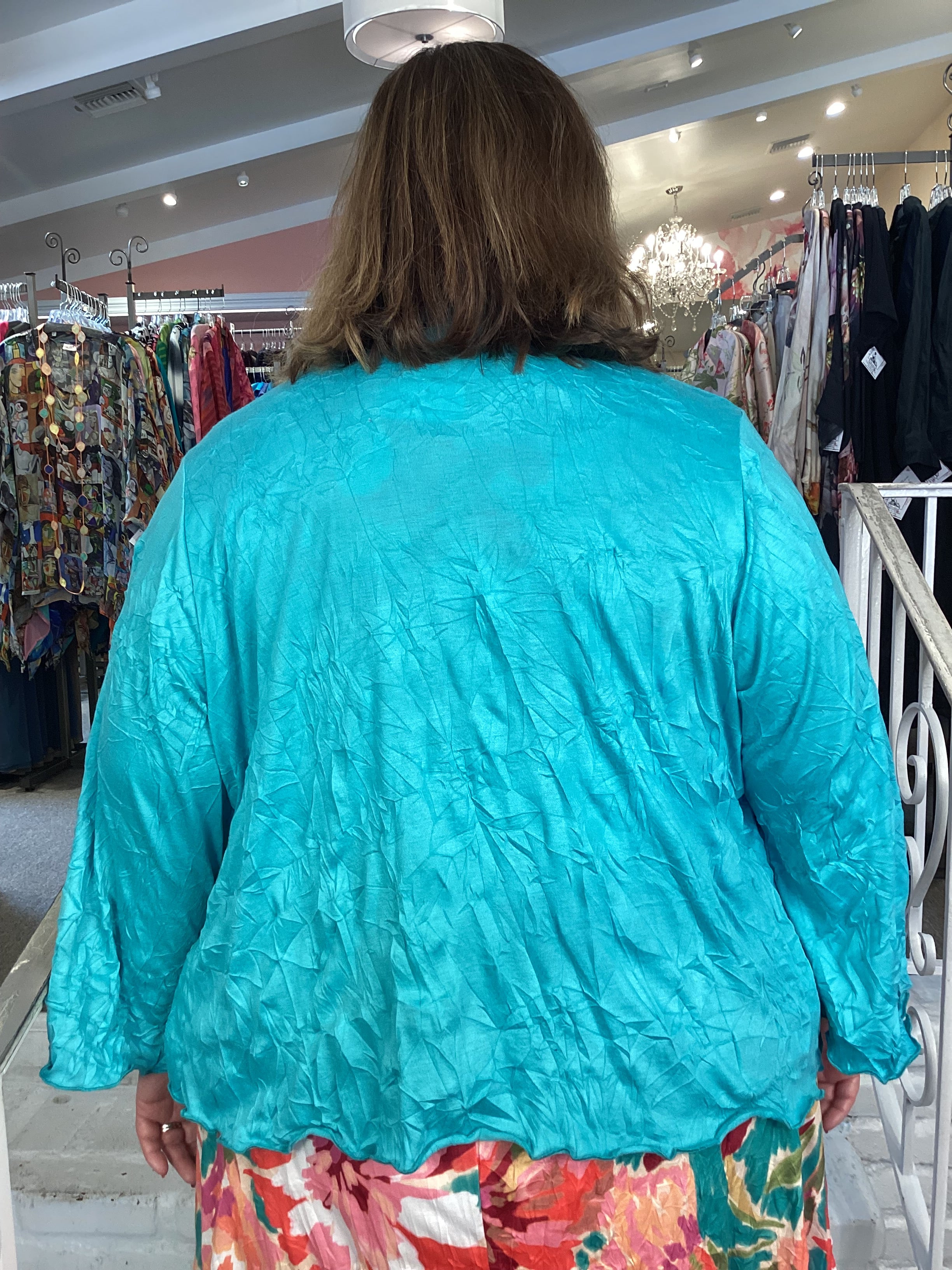 The crinkle shrug is a perfect layering piece for several of the Vine Street dresses and tank tops. Long sleeves, open front, merrow stitch finish.