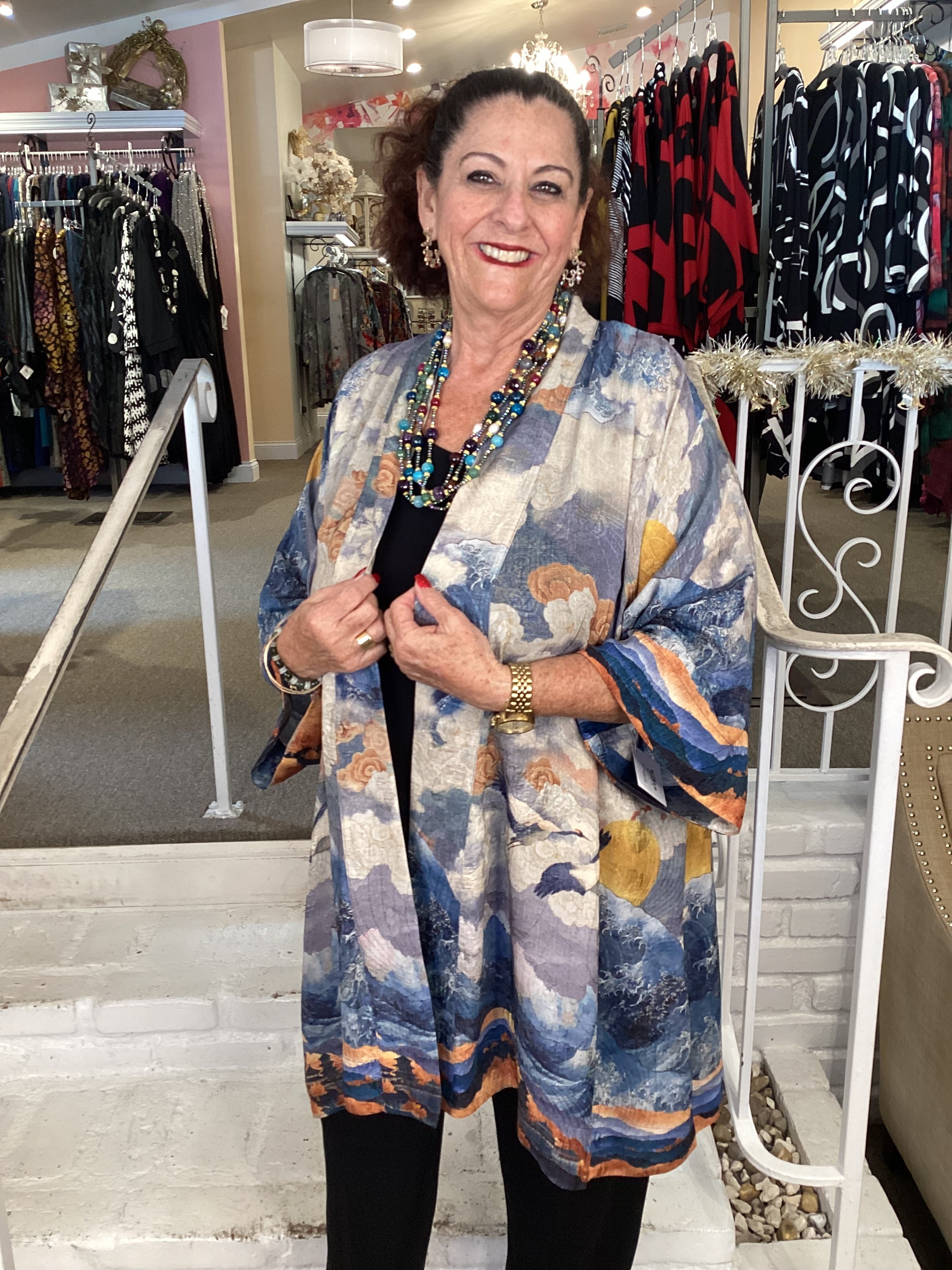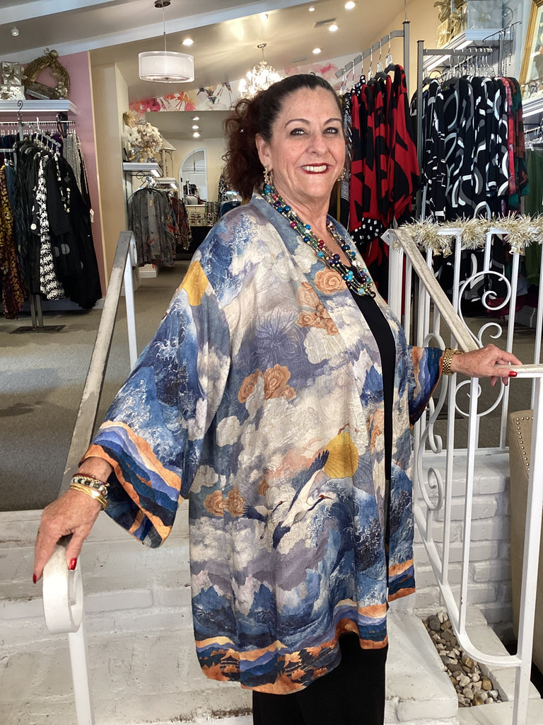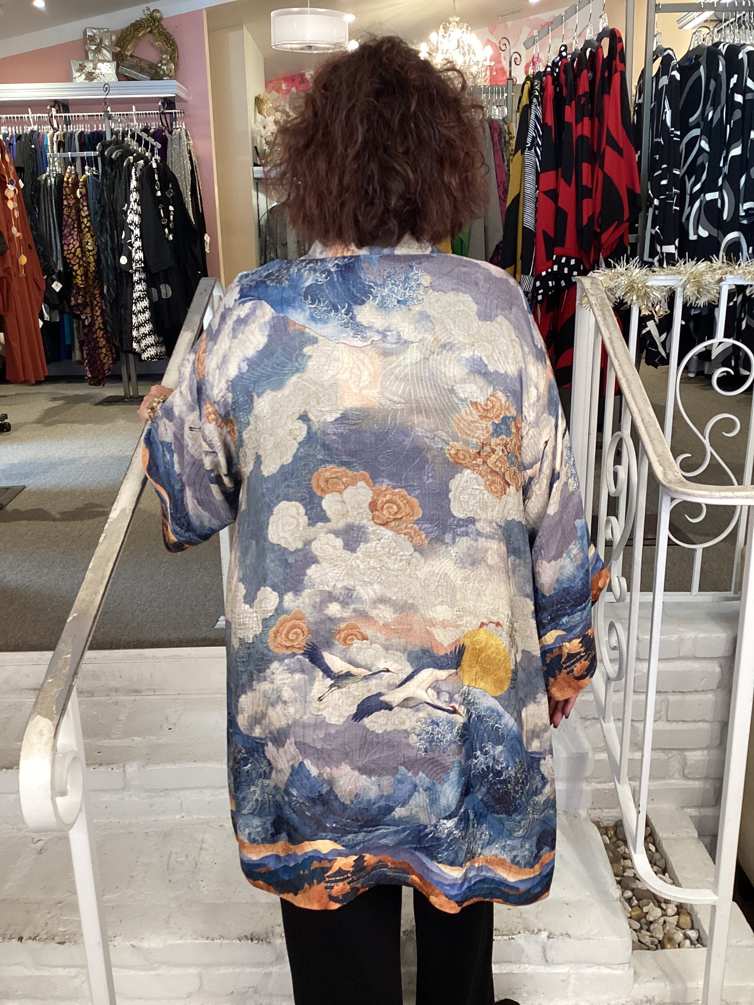 SILK KIMONO-SUN CRANE IN BLUE 0917 SCB