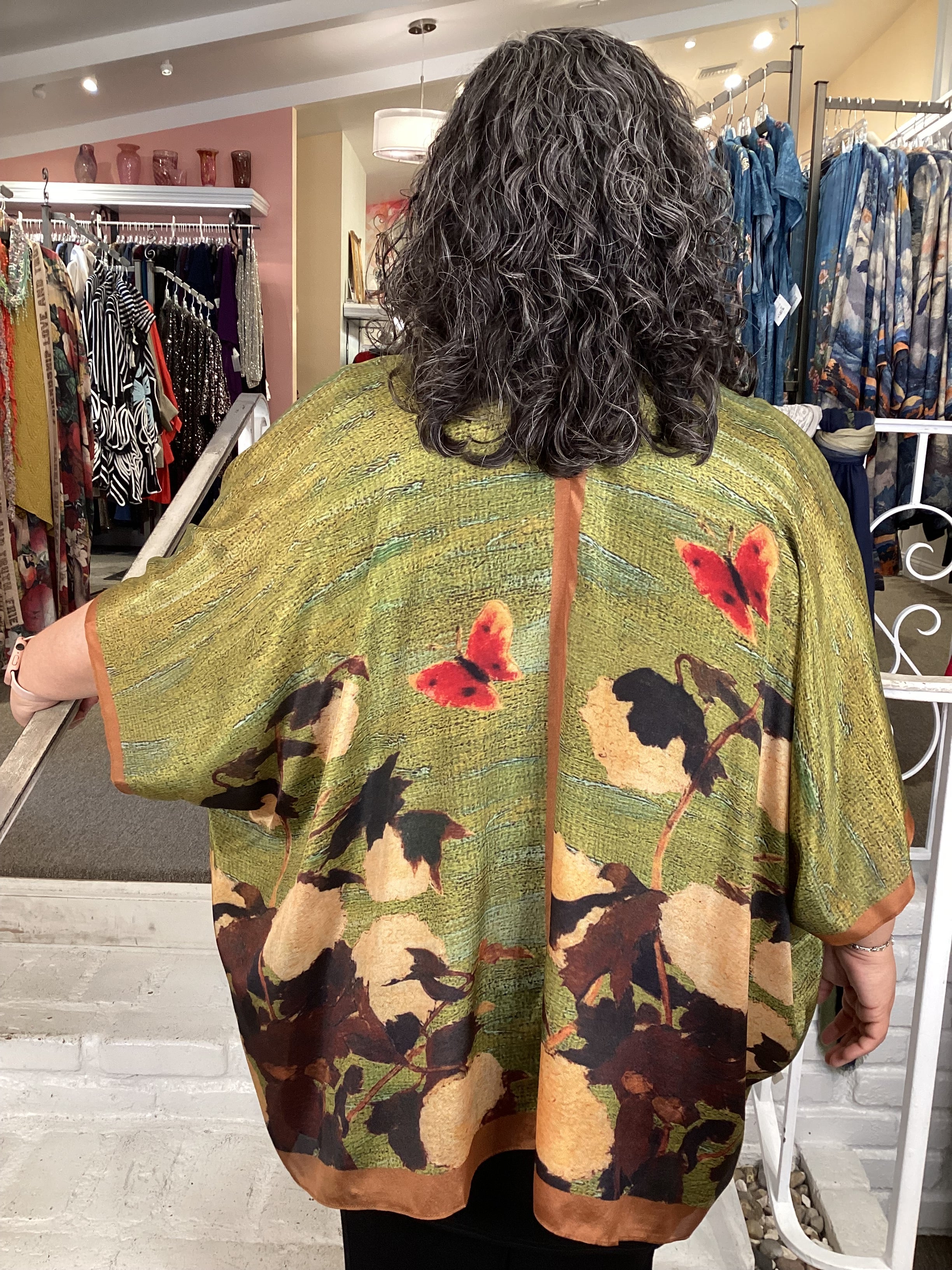 Slip into pure silk elegance with this show-stopping Koi kimono from Cocoon. Layer it over your favorite dress, jeans, or separates to instantly elevate any occasion—whether you're channeling glamorous vibes or embracing your inner bohemian. From milestone celebrations to gallery nights and dinner dates, this beauty transforms any moment into something memorable.