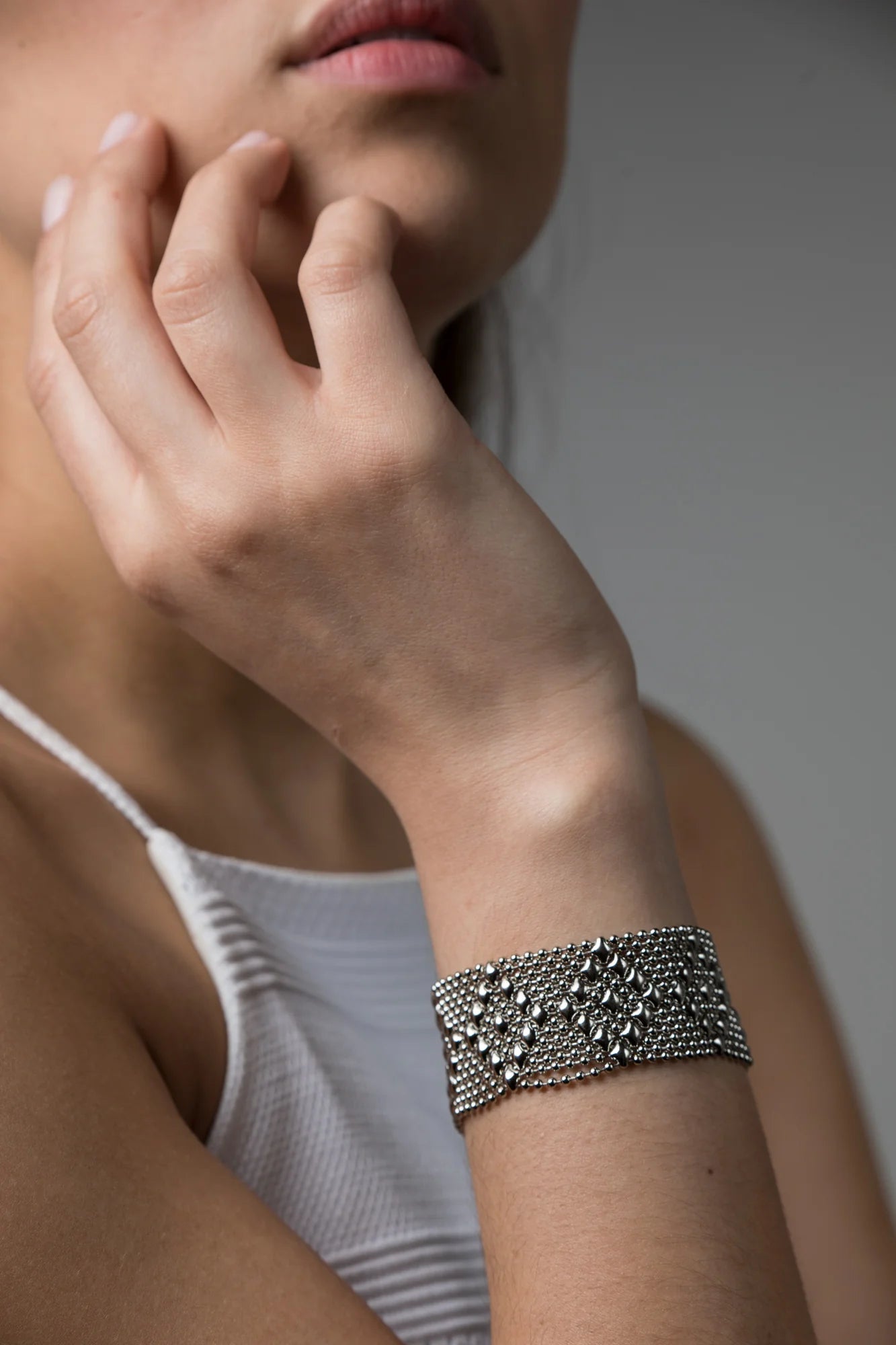 TB9 is one of the amazing SG Liquid Metal bracelets that are crafted by hand. The tiny ball chain mesh is made of the smallest ball chain available resulting in a magnificent soft smooth silky mesh like no other. Customers appreciate the lightweight and delicate mesh in these pieces. These bracelets will always be classics.