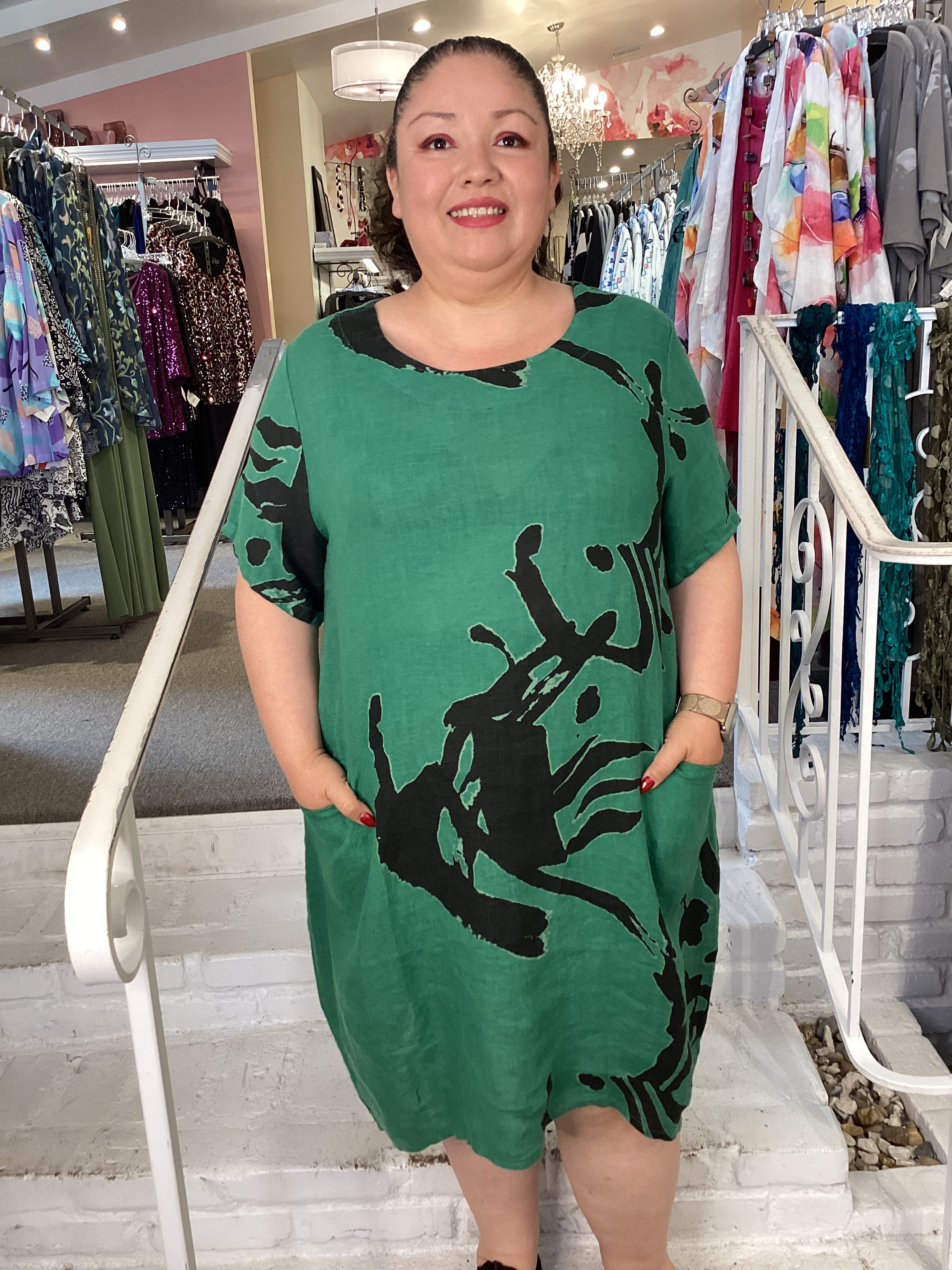 Discover understated elegance with the Turtle Dress, where premium linen construction meets thoughtful design details. This sophisticated piece features a flattering scoop neckline and elbow-length sleeves that work seamlessly across seasons. The eye-catching graphic print and functional front pockets add both character and practicality, while the generous cut and below-knee hemline ensure comfortable, confident wear. Available in two sizes to accommodate diverse body types and styling preferences.