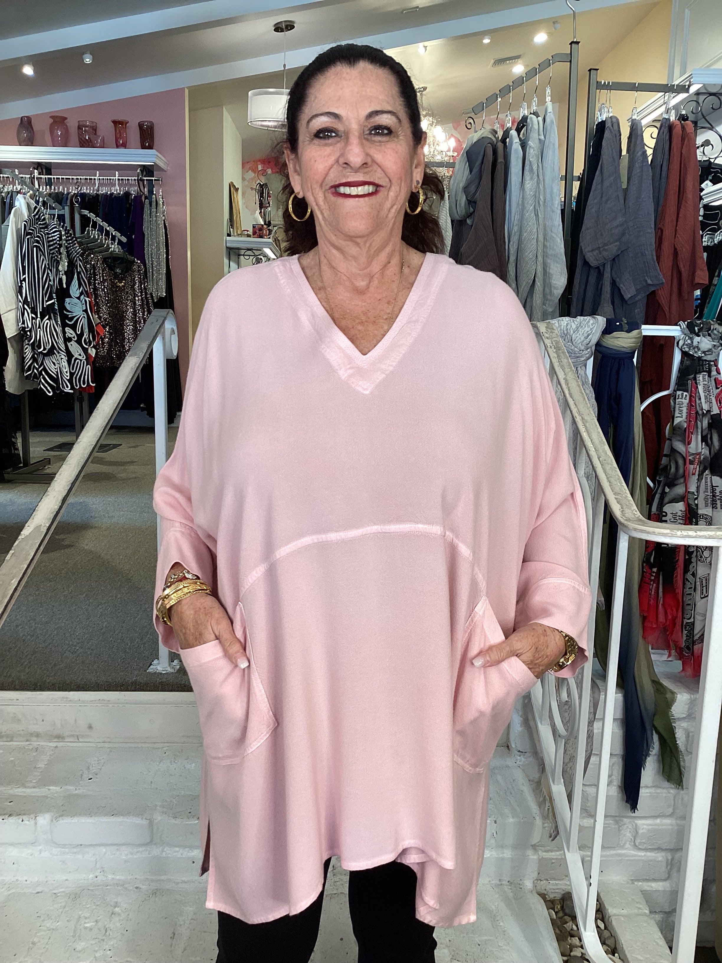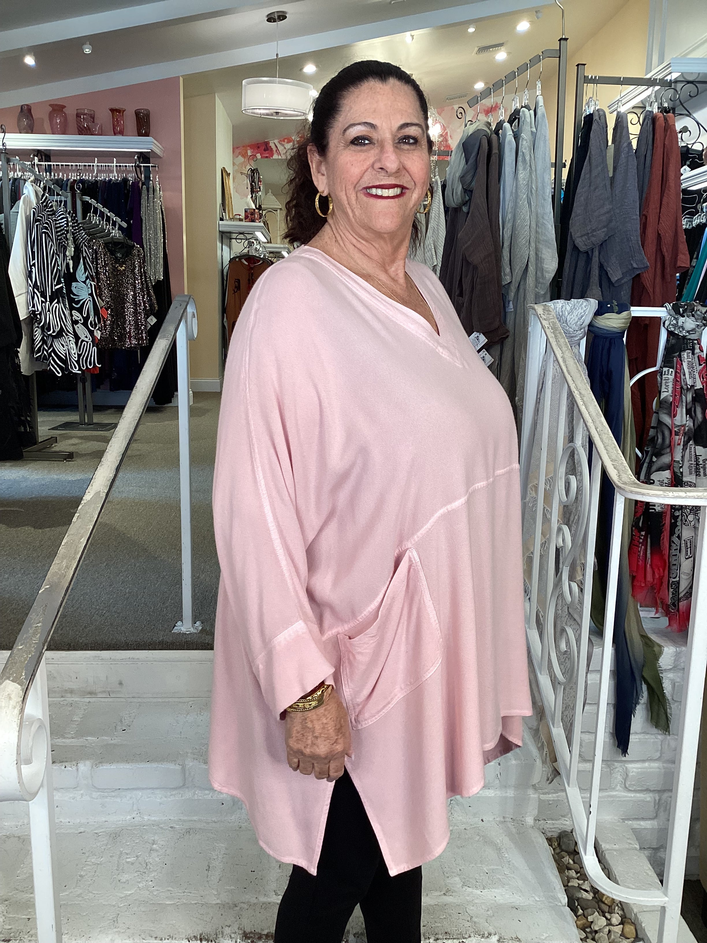 V 2 POCKET TUNIC - POWDER PINK