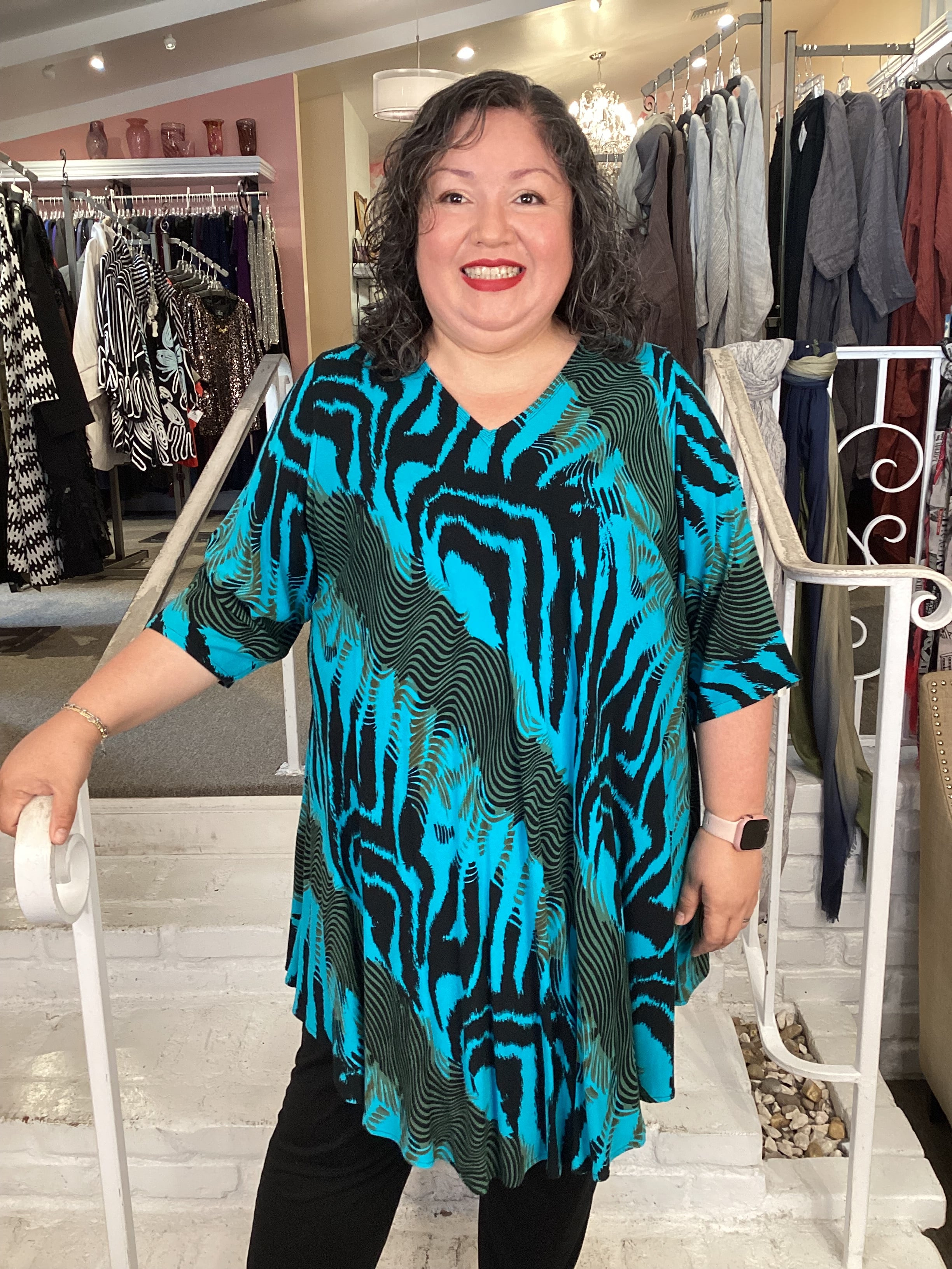 Elevate your wardrobe with this sophisticated V-neck tunic, designed for modern comfort and timeless appeal. The striking quality fabric creates visual interest, while the bias-cut construction ensures a flattering silhouette. Elbow-length sleeves and a gracefully rounded hem provide movement and ease, making this piece ideal for layering or wearing solo. Versatile enough for casual outings or dressed-up occasions, this tunic delivers both style and wearability for the discerning plus-size shopper.